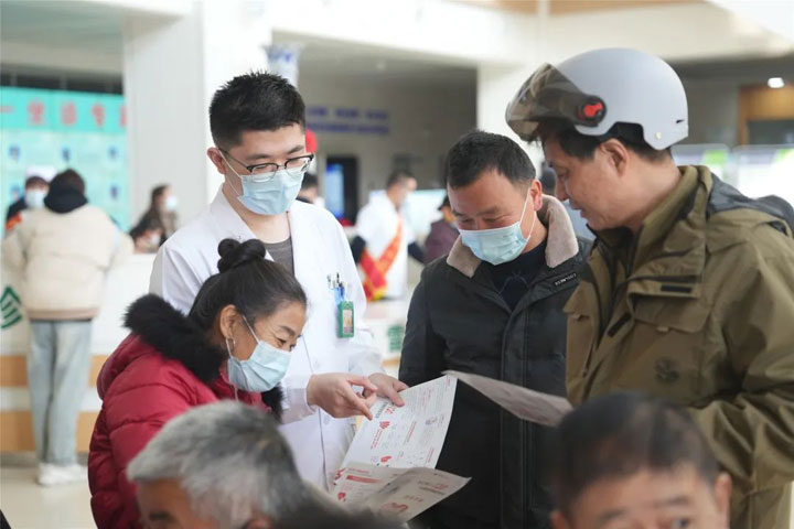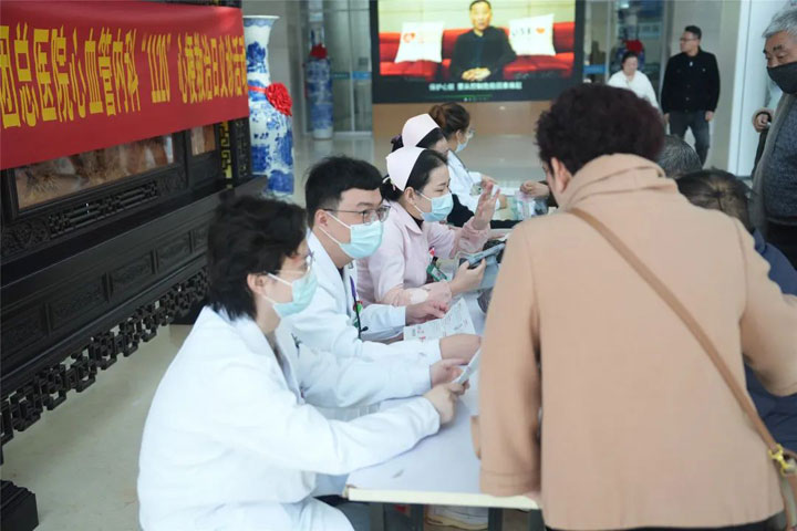 活动现场,前来咨询及接受义诊的群众络绎不绝,东方总院副院长李枫教授,导管室主任宁伟,熊堂鹏主治医师、朱运成、张伶俐住院医师耐心细致的为每一位群众问诊,解答健康疑问,医护人员还免费为群众测量血压,发放“1120心梗救治日”健康宣传材料。