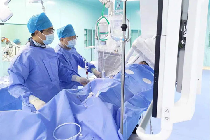 面对这一复杂情况,手术团队迅速做出决策,决定采用抽吸导管来抽取血栓,并植入一枚支架以确保血流通畅。这一果断而有效的救治行动使得患者的血管血流得到迅速恢复,患者随后被转运至CCU进行进一步的观察和治疗。值得一提的是,整个手术过程仅耗时35分钟,展现了医疗团队高效救治的专业水平和淮南东方医院在心梗紧急救治方面的显著实力。