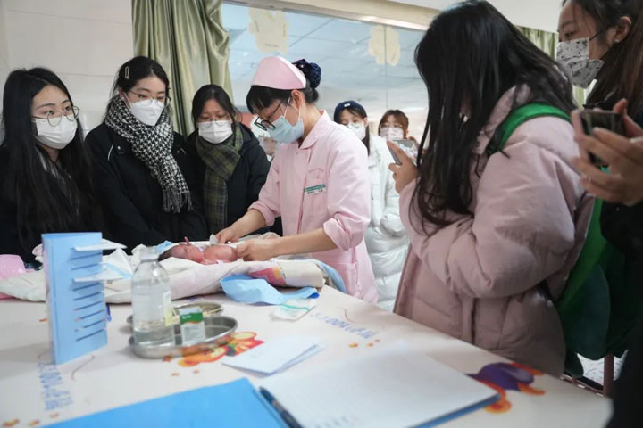 近日,淮南师范学院2021级学前教育专业的20余名同学,在淮南师范学院教育学院客座教授、淮南东方医院集团总医院儿科护士长卢明霞的带领下,来到淮南东方医院集团总院参观学习。