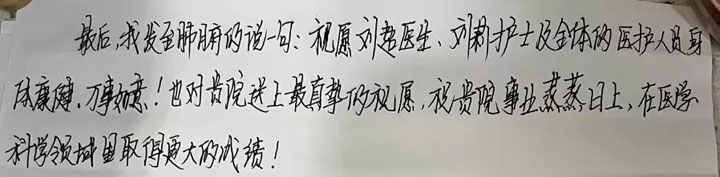 一面锦旗表达了患者对神经内科全体医护人员技术的肯定和信任,一封手写感谢信信更表达了患者对神内科全体医护人员最质朴真诚的谢意,句句都饱含着真情,这也是对医护人员辛勤付出最好的回报。在危急关头,神经内科医护人员毫不犹豫,科学救治,这是救人的本能,更是医者的仁心。神经内科陈蓓蕾主任表示:“我们将继续以高度的责任心、务实的工作作风和高尚的医德,一如既往地守护好每一个生命”。
