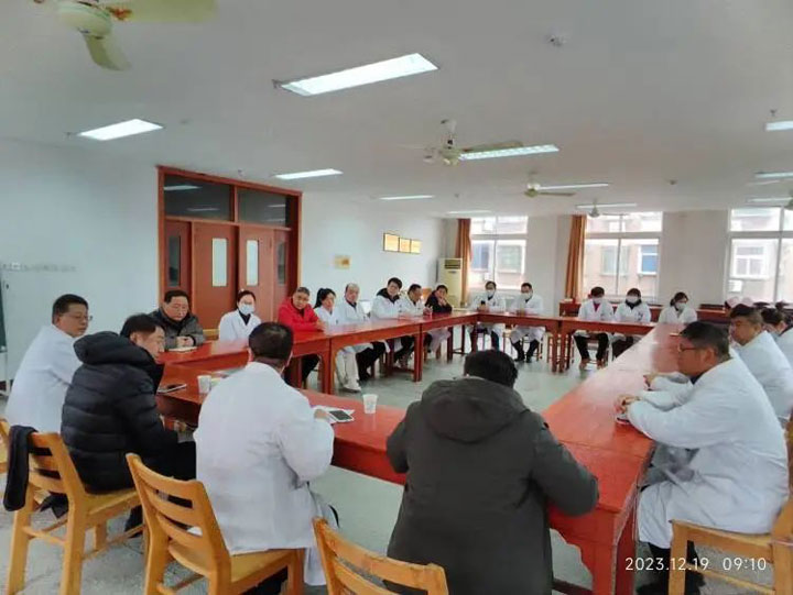 律回春晖渐,万象始更新!12月19日,集团江永强董事长、总院办公室檀朝兵主任一行来到基层医院倾听民声、体察民情、感受民意、排解民忧。田东医院在徐学彬院长、齐学良党支部书记、陶张联院长的带领下,各科室主任、护士长、职工代表参加了调研会。调研会由徐学彬院长主持召开。