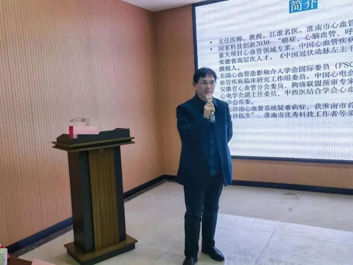 会议由淮南东方医院集团总院心内科行政主任汪蛟龙主持。会议首先欢迎了本次参会的集团领导及周边基层医院胸痛救治单元负责人。汪蛟龙主任强调胸痛救治单元的建设对于急性胸痛患者的诊治至关重要。它能够快速明确诊断,减少治疗延误,极大程度上提高了心梗救治率。本次培训会议将重点介绍胸痛救治单元的建设内容、数据上报流程以及在基层医院创建胸痛救治单元的经验分享。这些内容对于减少急性胸痛患者的治疗延误,提高心梗救治率具有十分重要的意义。