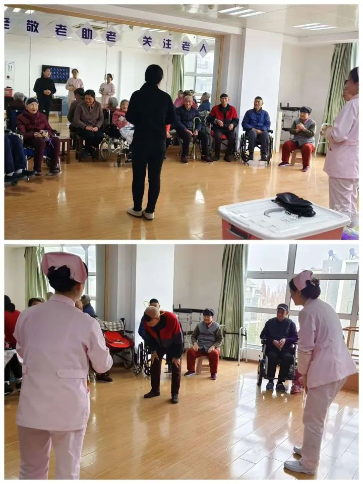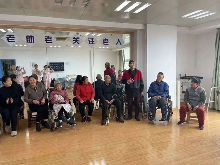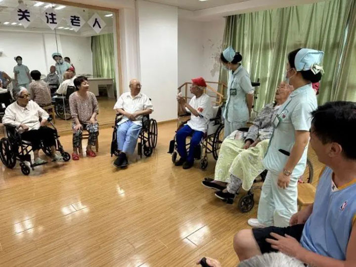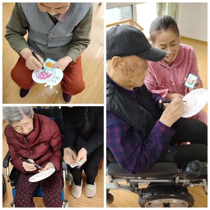 活动内容丰富多样,除了一般的游戏环节,还包括绘画比赛。这些九十多岁的老人如同孩子般欢愉,赢得了家属们的热烈掌声。一位家属表示,她从未听过父亲唱歌,而在此次活动中,父亲却主动要求献唱一曲。随着活动气氛愈发热烈,老年患者和家属们逐渐积极参与,有的家属甚至带领大家进行形体锻炼,一位九十岁患者也激动地带领大家一同学习八段锦。