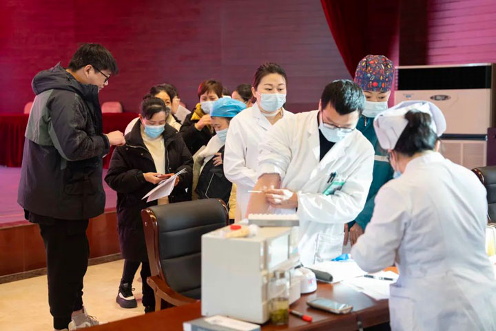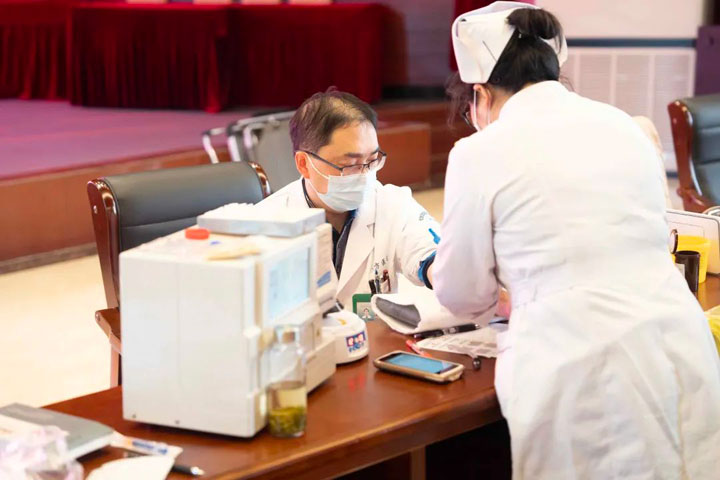 活动现场,从院领导到临床一线科室再到行政后勤,有每年都来献血的老面孔,有第一次来的新面孔,有趁着没有排班特意赶来的医生护士,而更多的则是从各个工作岗位中挤出时间参加献血,结束后又返回岗位继续工作的东方人。大家虽身处不同岗位,但都第一时间汇集到献血活动的现场,以“一臂之力”传递爱心守护生命。其中康复医学科医疗中心院长尚甲甲更是一早便带领科室10多名医护人员赶来,集体报名参加。