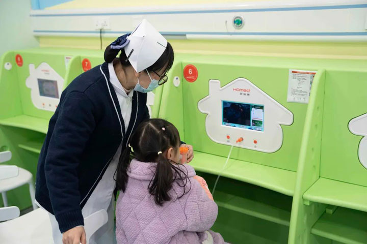 雾化吸入是儿科常见的治疗方式,但许多家长都遇到过这样的问题:虽说治疗时间只有短短十多分钟,但小朋友缺乏耐性,不愿意配合,哭哭闹闹影响了治疗过程。为了解决家长们的这一烦恼,2024年1月23日,东方总院儿科门诊全面升级,引进了多台集治疗、监测、宣教及娱乐为一体的儿童智能一体化雾化机,让孩子专注、安静地接受雾化治疗。