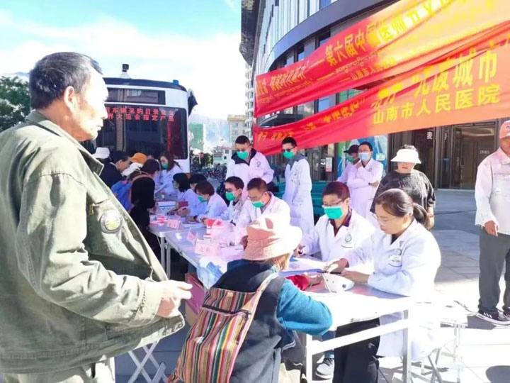 下了飞机,没有任何耽搁。医疗队就第一时间前往西藏山南市人民医院。海拔3700多米的山南市,拥有着丰厚的文化底蕴,民族众多、边境范围广阔、农牧业资源丰富。稀薄的空气阻挡不了医疗队的热情,“心率117次/分,血氧饱和只有82%,有的同事不可避免地出现高原反应,怀着对高原的敬畏,我们投入了自己的工作。”孙智勇医生说:“我既然来了,就不能白来。”