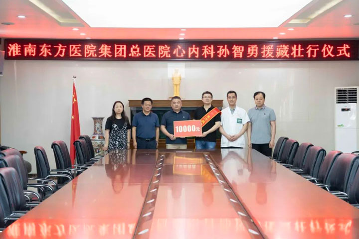 淮南东方医院集团高度重视援藏工作,接到任务后,江永强董事长立即指示,选派精锐骨干参与此项工作。经过层层甄选,2023年7月,淮南东方医院集团心内科医疗中心孙智勇医生顺利入选安徽省第九批“组团式”援藏医疗人才。临行前,医院集团为孙智勇医生举办了郑重的壮行仪式,送上10000元生活费,并鼓励他克服困难,努力发扬新时代医务人员职业精神,为受援地区人民群众的生命健康保驾护航。克服个人和家庭的种种困难,孙智勇医师义无反顾地踏上了援藏之路,就任西藏山南市人民医院心脑血管内科副主任。