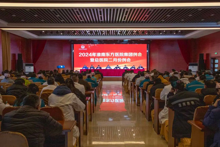 谋定而后动,方可笃行致远。2024 年工作会上,江永强董事长提出“守底线、严责任、比技术、比服务、重考核”的工作总要求。为全面贯彻落实集团工作会目标,2024年2月23日,淮南东方医院集团在总院多功能厅召开集团例会暨总医院二月份例会,江永强董事长发表 “新春第一讲”,就如何规范医疗,创新发展,勇于担当作为,实现集团高质量发展进行战略部署。集团领导层、各医院领导班子、医疗中心院长、总院各科室主任、护士长参加了会议。