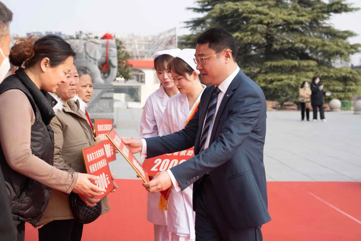 在随后进行的特困患者救助基金发放仪式中,江永强董事长为5名困难患者家属每人送上2000元现金。自2012年在江永强董事长的主导下创立以来,“东方特困患者救助基金”已为贫困患者送去慰问金30余万元,用实际行动不断温暖越来越多的人,传递着东方人心中满满的爱和正能量。