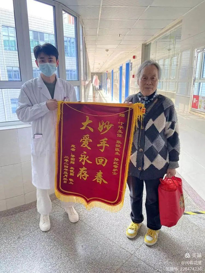 出于医生的使命,本着绝不放弃病人的原则,心内科叶平副主任与张旺医生立即采取治疗措施,予以强心改善心脏功能,利尿减轻心脏负荷、平喘解痉、加强抗感染治疗,并请呼吸内科,皮肤科相关科室协助诊治。经过一天天的努力,在医生与护士的强强联手下,从鬼门关把老爷子抢了回来。在医护人员的专业治疗和悉心护理下,患者顺利康复出院。一面字数寥寥但分量沉重的鲜红锦旗,写尽患者及家属对医护人员仁心仁术的赞许与肯定,也道尽了患者的艰辛与不易。心脏疾病一半在于治疗,一半在于关怀。这里的心衰患者,不仅依赖精湛的医技为生命做延续,更需要来自精神、心理上的双重抚慰和疏导。心内科始终将“以患者为中心”服务理念,贯穿于医疗流程各环节,为的只是尽最大可能传递人性温暖和关爱,与患者直面疾病挑战,全力守卫生命防线。科室里的医护患,因疾病而相识,也因治疗而结缘,成就了真挚朴实的医患情谊。