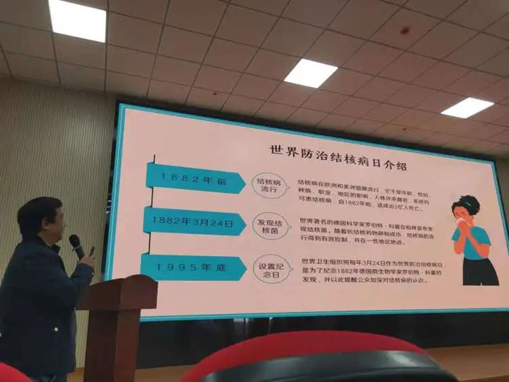 此次恰逢第29个“世界防治结核日”受春申湖校区邀请,校医室协调,由杨江院长为200余命师生讲解了流感、诺如病毒、结核病等常见校园传染病的防治,发放宣传彩页。