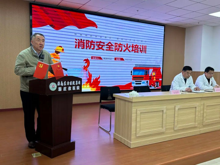 周涛书记首先对全员进行消防安全培训。培训内容含盖“四个能力”,确保各科室在宣传培训、消防意识、应急预案、逃生疏散等方面高度重视,从根本上避免火灾事故的发生。并布置会后医院所有人都要熟知培训内容,不日将予以考核。