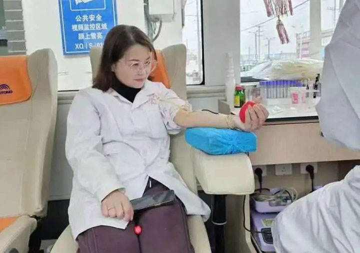 在献血队伍里有各科室的医生、护士;有连续几年坚持献血的老面孔,也有首次加入的新面庞。躺在献血椅上,或许会有些许的紧张,却没有丝毫犹豫。大家放下手上的工作匆匆赶来,在血站工作人员指引下有序完成献血,又默默离开回到岗位上继续工作。流淌的是汩汩热血,鲜艳、赤诚;传递的是生命的希望,温暖、有力量。