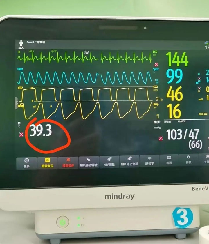很快,CT影像证实了李主任的判断,明确诊断辰辰“急性化脓性阑尾炎伴穿孔”,儿科、普外科、麻醉科,立即携手为辰辰完善术前评估,准备为孩子急诊手术。“因为是幼儿,持续高热,术前高热达39.3℃,又是急诊手术,麻醉风险很大。”麻醉科卜美林主任一刻不停地盯着监护仪,在进入手术室后,就立即使用了退烧药物同时一边用冰块为辰辰物理降温,一边进行术中严密监控。直到手术顺利完成,轻轻唤醒孩子后,他悬着的心才终于放下。