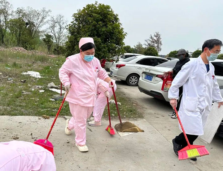 11日下午,在院党委的推动下,医院加大环境卫生清理力度,各支部党员、群众、积极分子身先士卒,纷纷带上清洁工具,对院内卫生包干区开展全方位、全覆盖的卫生清洁活动。以清除环境卫生死角为重点,有效清除院内杂草和烟头,焕然一新的院区内处处洋溢着盎然的生机。
