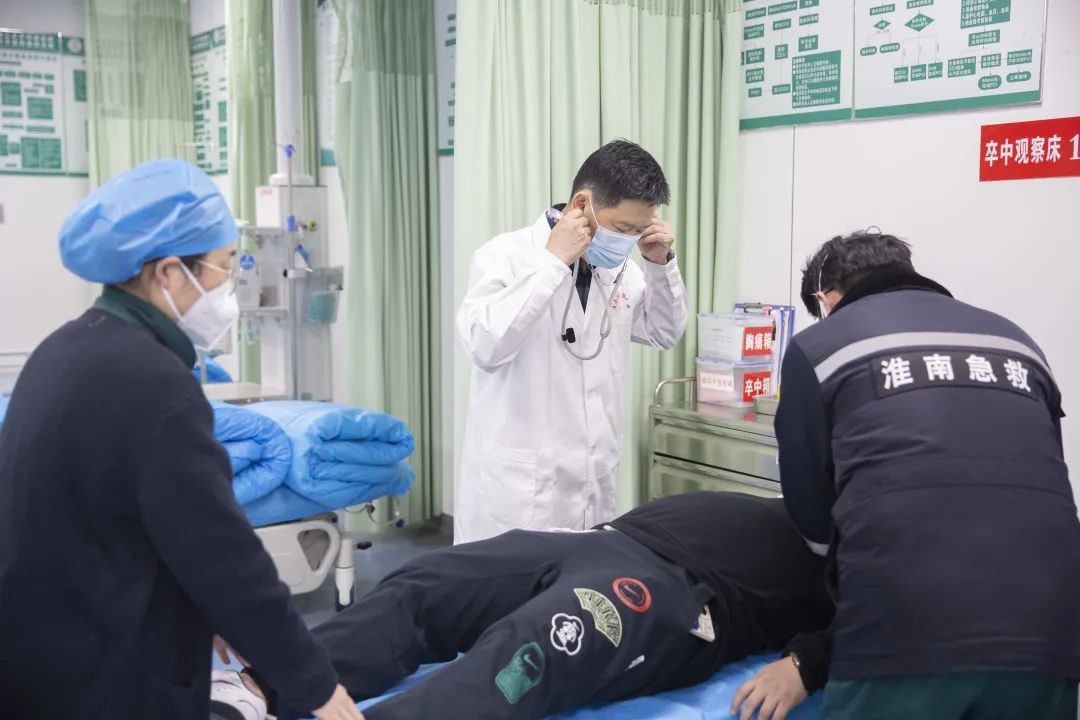 这感人的一幕,将大家的回忆拉回到前一天的惊心动魄中,在锦旗送来的前一天,正在急诊科值班的韦志红医生路过消化科门诊时无意间发现了排队就诊人群中的患者聂先生,虽然大部分等待就诊的患者都有身体不适的症状,但是聂先生身体不自主抽搐的反应还是引起了韦志红医生的注意。因怀疑患者是癫痫发作,韦医生快步上前询问,没想到这时候聂先生却突然晕倒在地,身体也不自主地开始抽搐。未等患者家属的“救命”二字出口 ,韦医生就冲至聂先生身旁,在进行紧急救治的同时通知急诊医学科的同事们速来支援。