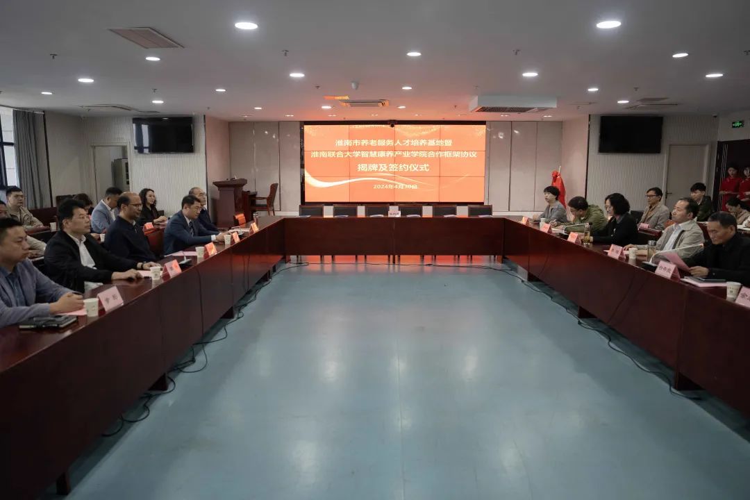 4月30日上午,淮南市养老服务人才培养基地暨淮南联合大学智慧康养产业学院合作框架协议揭牌及签约仪式在淮南联合大学图书馆五楼学术报告厅举行,淮南市政府副市长乌吉阿哈买提·吐尔逊、民政局副局长宫涛、人社局副局长张新辉、淮南联合大学校长李辉等参加仪式,淮南东方医院集团董事长江永强受邀参加并作为企业代表致辞。