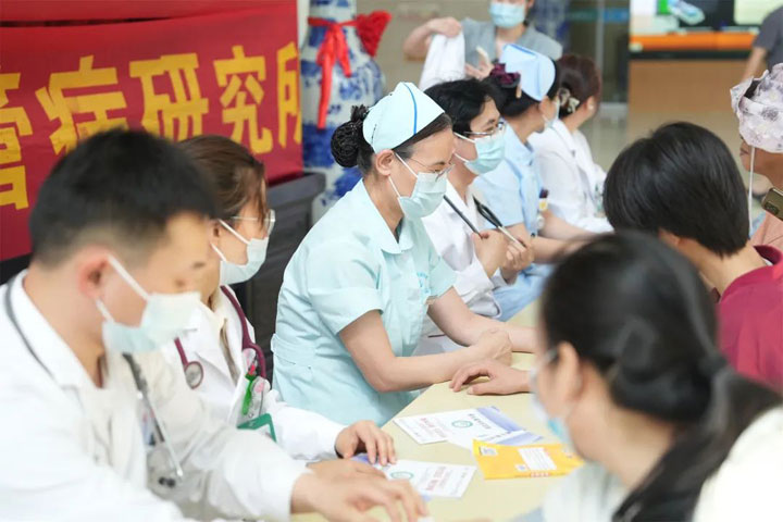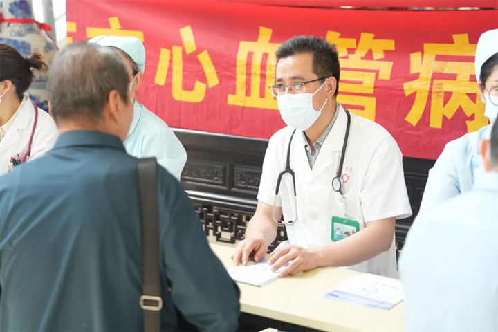 此次健康宣教活动吸引了诸多群众前来咨询,心血管内科专家耐心详细地询问患者病情、查看病历,给予患者最合适的降压治疗方案。护理人员为其进行血压、心电图测量,并发放高血压健康知识宣传手册,耐心细致地为前来咨询的患者提供高血压防治咨询与指导。