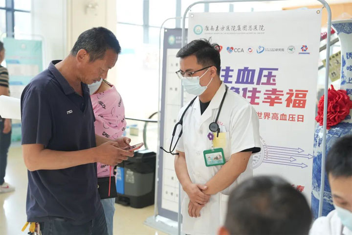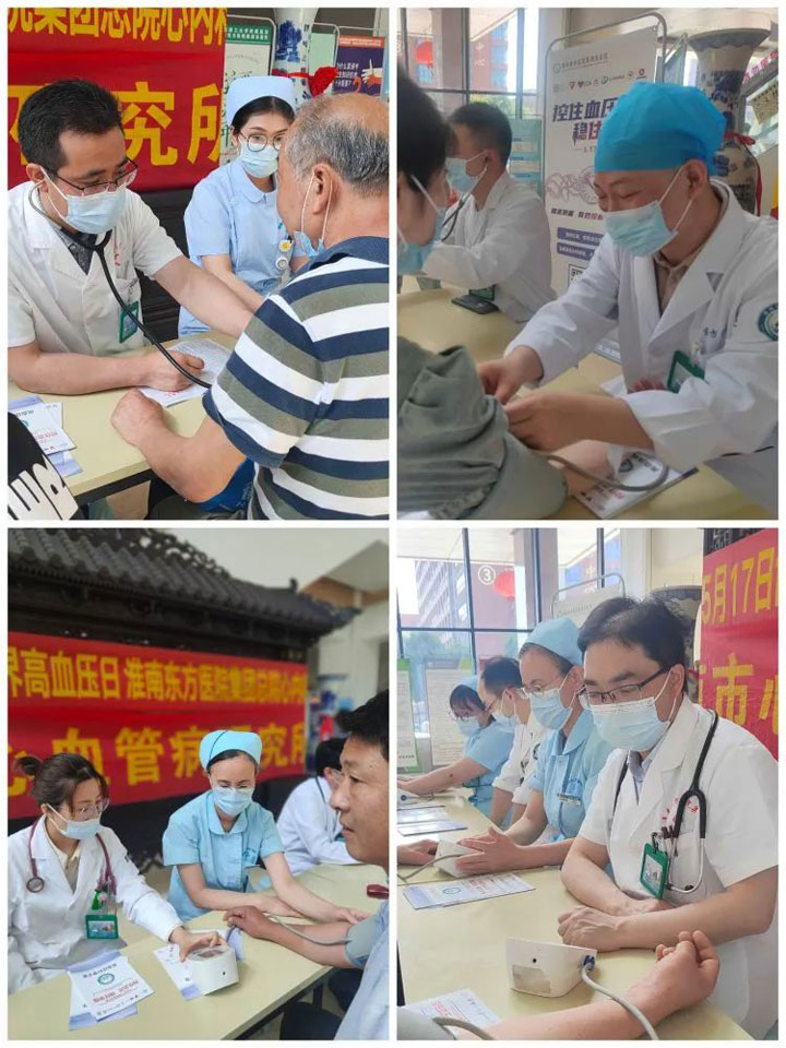 2024年5月17日是第20个世界高血压日,为提高群众高血压防治知识知晓率,普及健康生活方式,培养群众防治高血压的行为能力,淮南东方医院总院高血压达标中心组织开展了“控住血压,稳住幸福”专题健康宣教活动,由淮南东方医院总院心血管内科专家李枫院长主持,在心血管内科汪蛟龙、叶平、刘焰华、金希华主任带领下,李雪、张鸣、马超主治医师,刘桂英、程慧护士长及其医护人员在东方总院门诊部为社会群众进行了健康宣教活动。