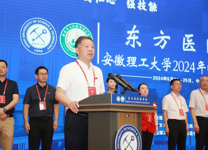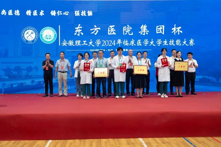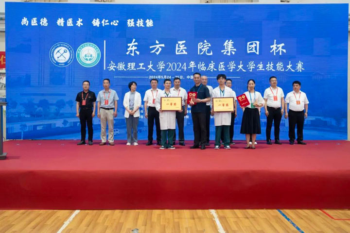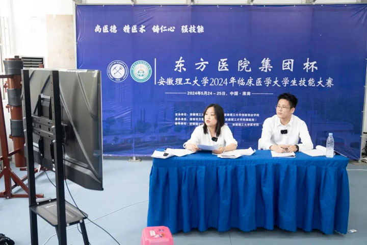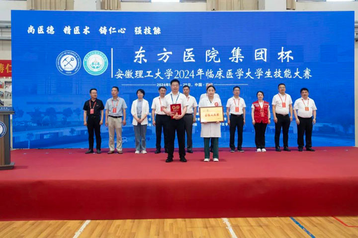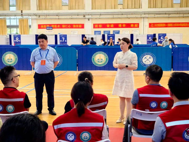 5月25日,“东方医院集团杯”——安徽理工大学2024年临床医学大学生技能大赛在安徽理工大学自强体育馆成功举办。该赛事由安徽理工大学医学部与创新创业学院共同主办,淮南东方医院集团总医院承办,同时得到了安徽理工大学第一临床学院和医学院的指导。本次技能大赛以“尚医德、精医术、铸仁心、强技能”为主题,共有来自安徽理工大学分布在全国各地11个教学医院的15支队伍,共计60名大学生选手参加。