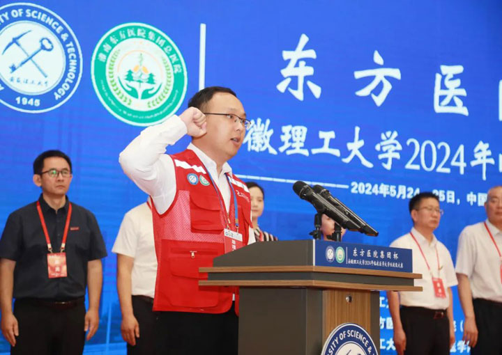 ▲安徽理工大学医学院董鑫宇同学代表全体选手进行宣誓