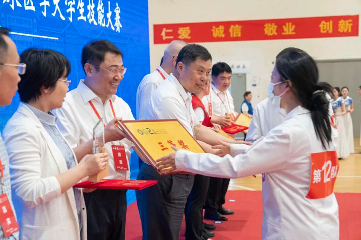 经过紧张激烈的比赛,最终评选出团体一等奖2项,二等奖3项,三等奖9项,最佳风尚奖1项以及动脉穿刺、切口换药、心脏体检等10个操作项目的单项奖。下午的闭幕式上,出席领导为获得此次大赛团体奖和单项奖的代表队和选手们颁奖。