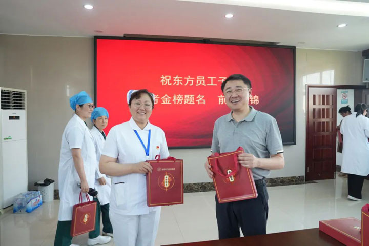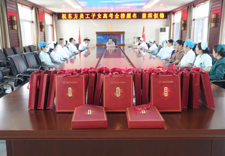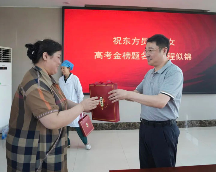 鱼跃龙门日,展翅正当时。一年一度备受关注的高考季牵动着每位家长的心,同时也牵动着作为职工“娘家人”的心。为了鼓舞东方职工子女的士气,为高考壮行。5月29日,淮南东方医院集团董事长江永强为集团40余名“家有考生”的职工送上慰问与祝福,并为他们送去精心准备的“金榜题名”礼盒,助力莘莘学子们鹏程万里、逐梦前行。