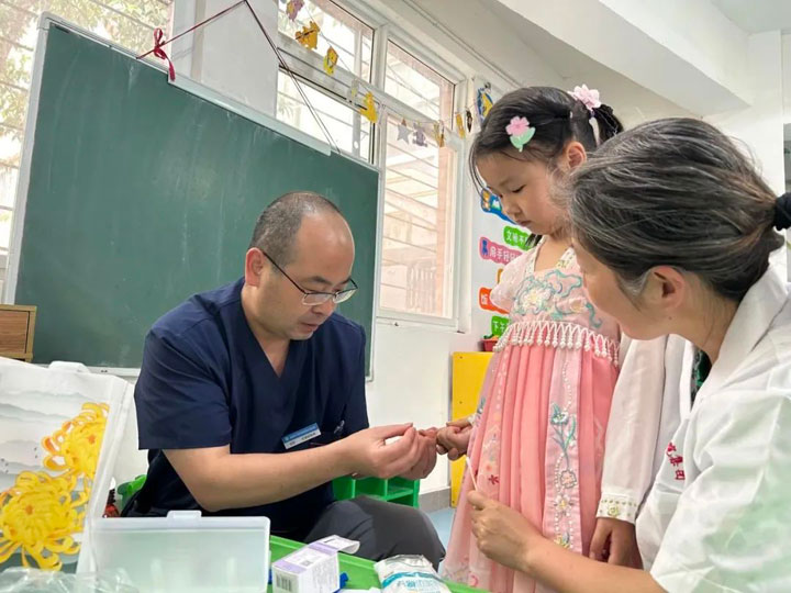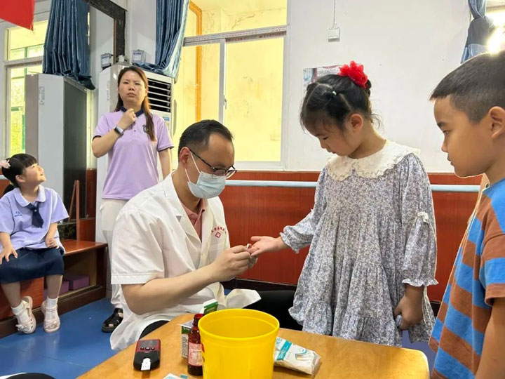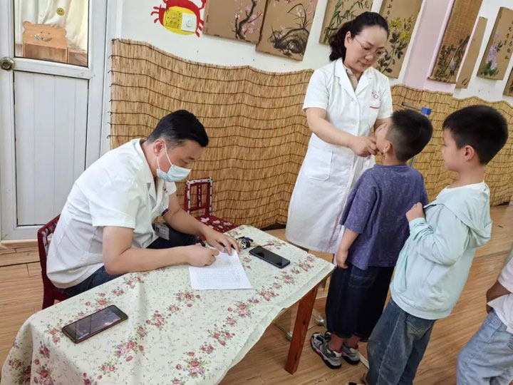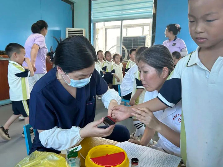 因准备充分、安排得当,加之过往多年体检积累的经验,新庄孜医院体检人员得心应手。在各幼儿园老师们的配合下,医生们认真、细致地给每个孩子做了全面检查。过程中用鼓励、表扬的方式缓解幼儿紧张的心理,积极营造一个轻松的检查氛围。特别在血常规检查中,孩子们相对比较紧张,医生们都贴心把宝宝抱到自己的怀里,用逗趣的语言分散孩子的注意力。检查过程井然有序,儿童体检工作顺利完成。