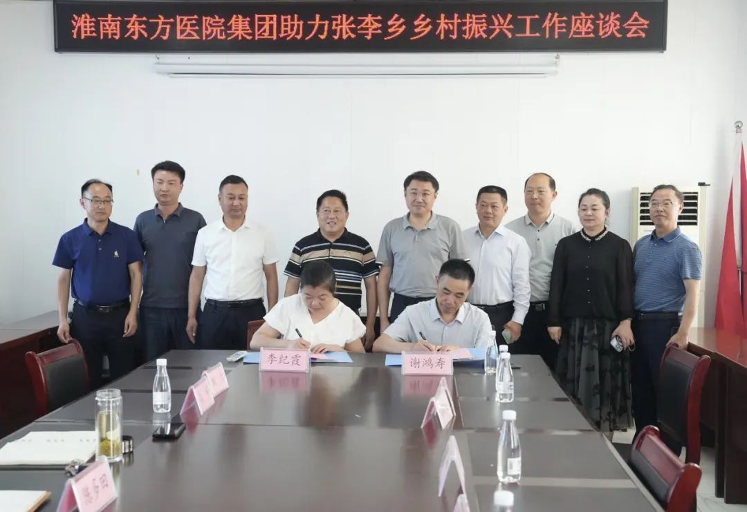 “东方医院集团不愧是三甲医院,技术好、服务好,这么多年来,为我们提供了优质可靠的医疗服务。董事长有责任、有爱心、有情怀、有担当。感谢你们来到张李乡,助力我们的‘寿'文化,为家乡做贡献。”张李乡党委书记陈多田感动地说。为更好地推动家乡医疗健康事业的发展,双方签订“淮南东方医院集团助力张李乡乡村振兴合作协议”,江永强董事长代表东方医院集团向张李乡捐赠人民币20000元,助力当地乡村振兴。