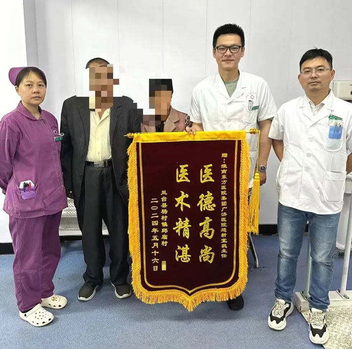 术后1个月随访,老人再通的内瘘功能恢复良好,使用通畅。为了表达对医生妙手仁术的感谢,家属送上订制的锦旗。“我知道你们不收红包,锦旗一定要收下,这是我们全家人的心意。如果不是魏主任,我们只能带着他去外地再试试了,谢谢您,救了我的父亲,帮了我们全家。谢谢您。”
