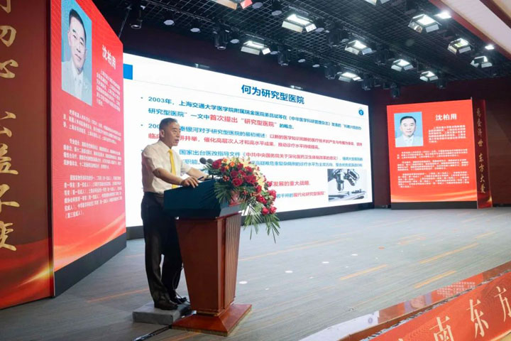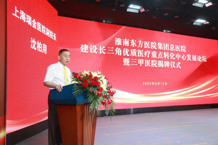 上海交通大学医学院附属瑞金医院副院长沈柏用发表致辞庆祝东方总院荣升三甲,他指出,东方总院长期以来一直积极实行“请进来”战略,不断引进先进的医疗技术和人才,为淮南地区注入了优质的医疗资源,使其在本地“落地生根”。作为“长三角优质医疗重点转化中心”的积极参与者,上海瑞金医院与东方医院携手合作,以“专家下沉”为突破口,通过知名专家坐诊、会诊、手术、查房、讲学,成立名医工作室等,共同致力于推动优质医疗资源的扩容下沉和医疗服务的同质化。今后,上海瑞金医院将继续以长三角优质医疗重点转化中心为平台,共同推动淮南地区医疗健康的蓬勃发展,让淮南地区的老百姓将能够在家门口享受到更加优质、便捷、高效的医疗卫生服务,足不出淮,就能够享受到上海一流的医疗服务。
