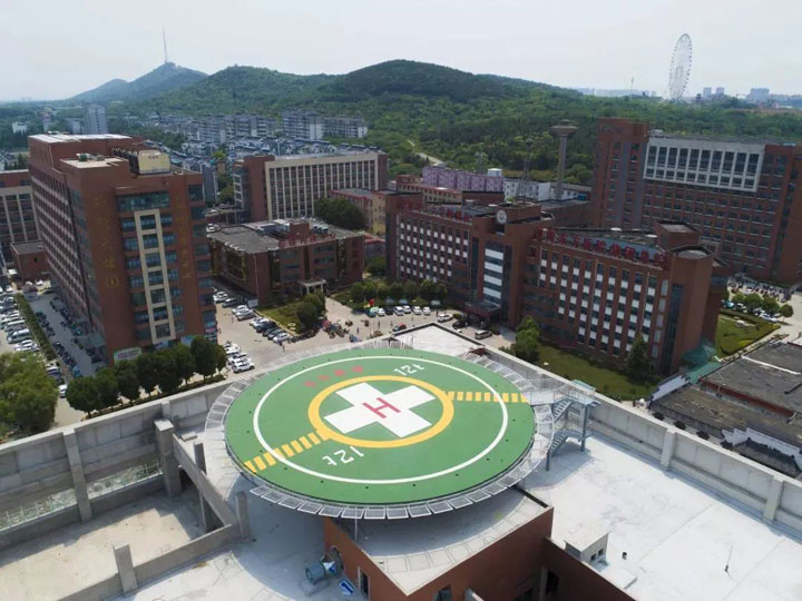 随着东方总院新门急诊大楼的完工,淮南首个医疗救援直升机停机坪也投入使用,标志着东方总院正式开启淮南市应急医疗空中救援服务的新纪元。该停机坪位于总院新门急诊大楼楼顶,是直径为24m的圆形。相较于一般停机坪只能承载6T,东方总院的停机坪承载重量达到12T,比普通停机坪承载能力大一倍,可停靠全世界最先进、最大的EC225商用直升机及其他机型。2023年4月22日,“携手同行 共促发展”首届中国航空医疗救护体系发展论坛于上海举办,淮南东方医院集团总医院朱胜副院长受邀参会并代表医院加入上海交通大学附属瑞金医院航空医疗救护协作网。