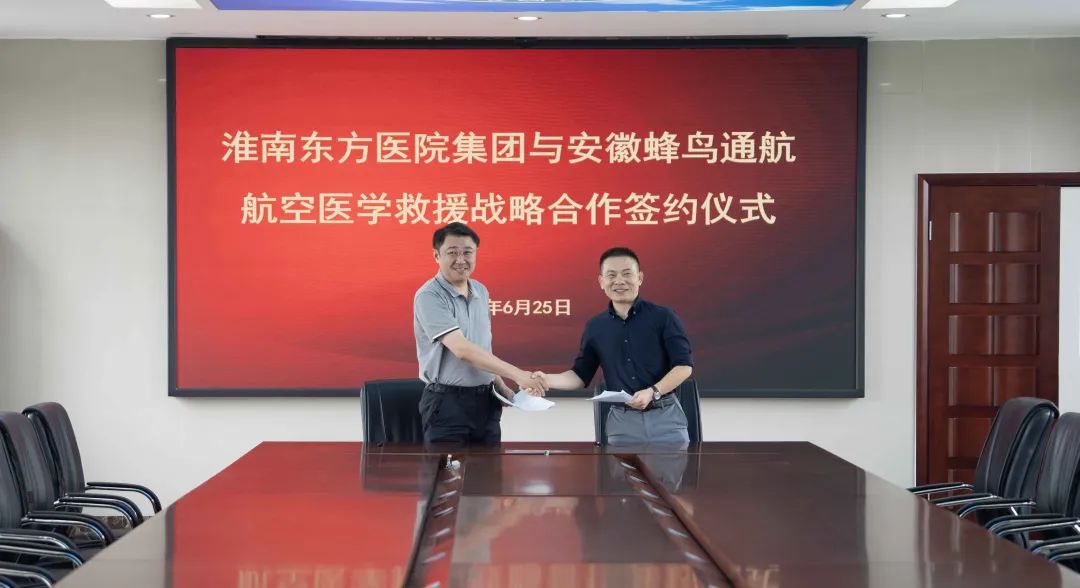 为提高本市对突发医疗事件的响应时效,持续提升区域间航空医疗救护能力,推进立体化航空医疗体系建设,2024年6月25日上午,淮南东方医院集团与安徽蜂鸟通用航空有限公司签订直升机航空医学救援战略合作协议,双方将通过医疗急救资源和直升机运营优势的结合,以实现即时响应的直升机救援服务为目标,确实保障人民群众生命健康安全。