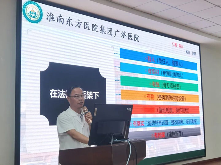 党委书记胡文生以“消防安全培训”为重点,对医院消防工作进行部署,制定《关于印发淮南东方医院集团广济医院安全生产月活动方案的通知》(院政〔2024〕20号文),推动医院消防安全管理。结合医院实际,胡书记要求全院职工高度重视消防安全,从机制出发,做好日常管理,熟练掌握消防安全知识,及时消除安全隐患,提高“四个能力”。