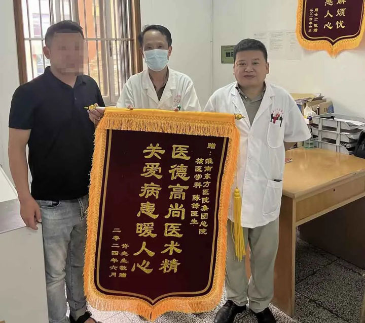 一面锦旗,承载着深深的温暖、诚挚的认可与坚定的信赖。近日,刘先生手捧精心制作的锦旗,踏入东方总院核医学科,将其郑重地赠予陈锋医生。锦旗上镌刻着“医德高尚医术精,关爱病患暖人心”的赞誉,这不仅传达了刘先生的感激之情,更是对淮南东方医院集团卓越医术的崇高认可。