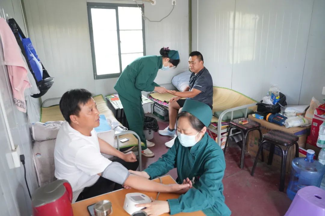 7月24下午,受江永强董事长的委托,集团党委副书记陆宝、集团急诊医学科医疗中心院长邹贵全带领医护人员来到淮河大坝,和安城镇副镇长黄志红,安城镇副镇长任杰一起,为连日来奋战在防汛一线的工作人员送去药箱、水、牛奶和方便面。来到值班点,邹院长详细地询问了解防汛一线工作人员的身体健康状况,并做相应检查和解答,因近日高温酷暑,他还向防汛人员宣讲了夏季高温防暑、防晒、防虫、防创伤的健康知识和简易的应急处理办法,以便于防汛一线人员应对突发的情况,提高大家的自我防护意识。随后医护人员为安成镇14个值班点的防汛一线人员开展了测量血糖、血压等义诊活动。