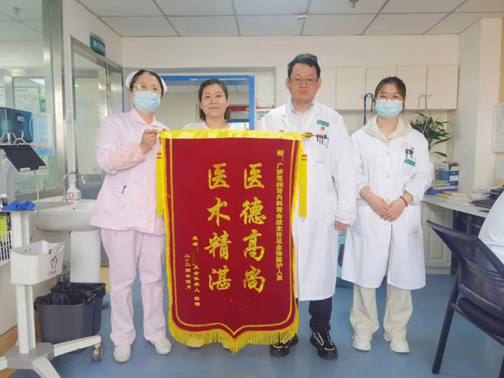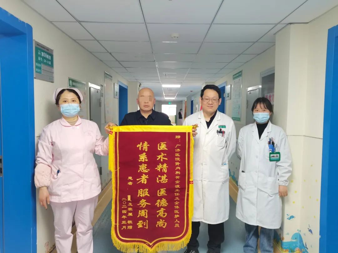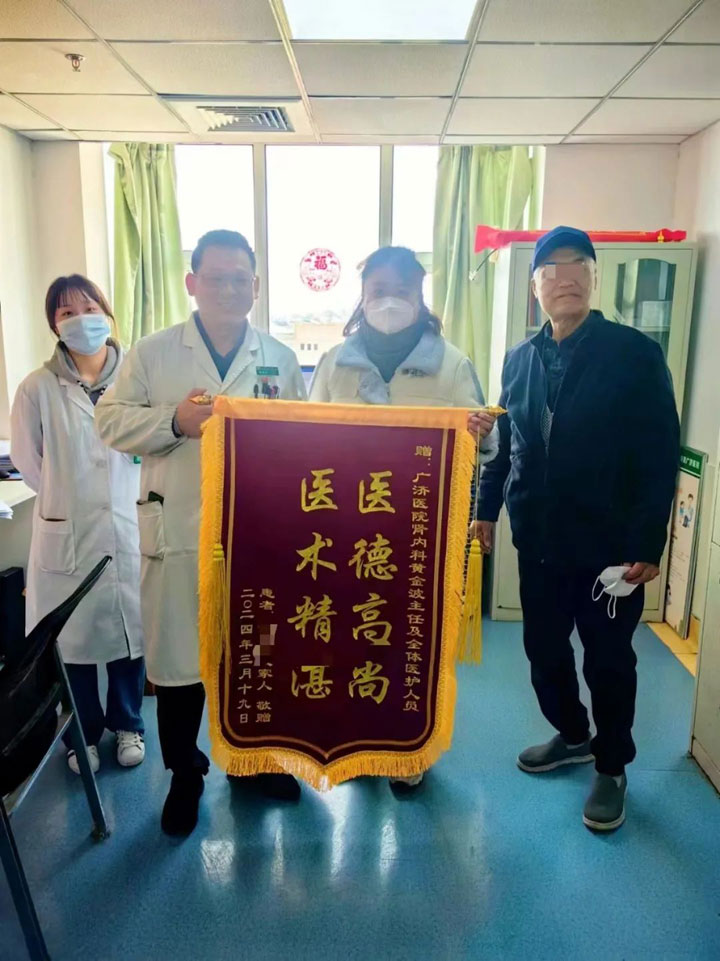 “浑身都是病,刚来那天下午,人突然意识不清,我们都担心极了。后面一天比一天好,第四天他精神头就不一样了,也能吃能喝了。”感激之余,家属专门订了一面锦旗,向主任护士长表达内心的谢意。