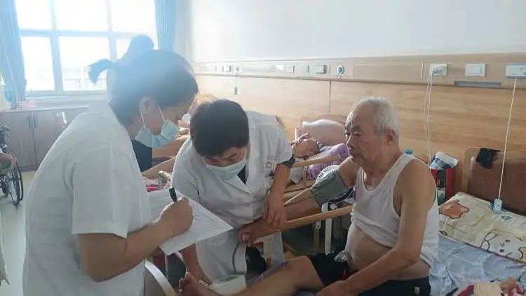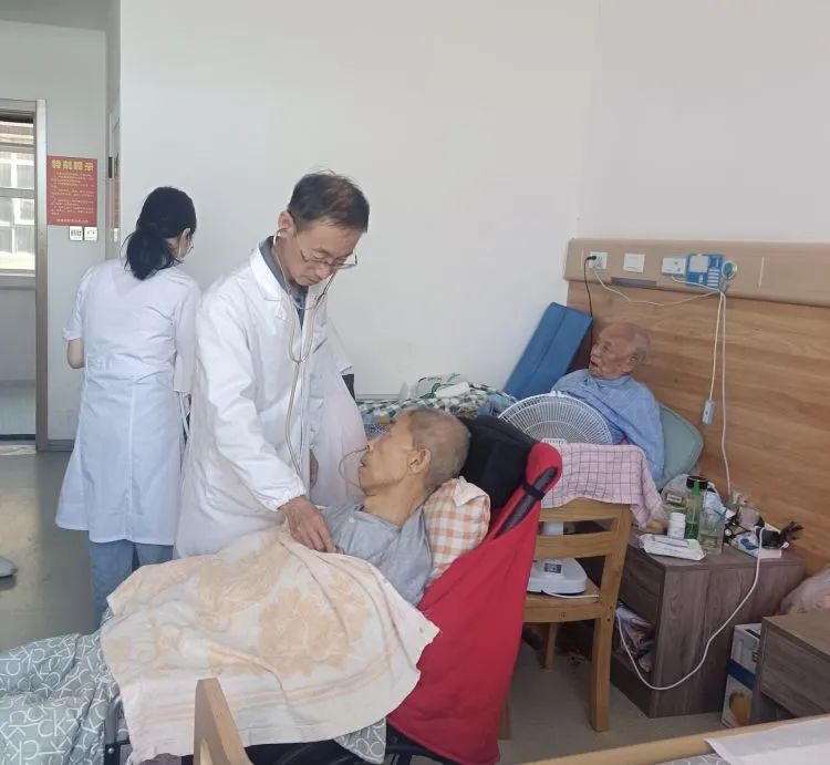 对于卧床老人们,医护人员便来到房间,为老人认真问诊、检查,仔细询问其相关病史及目前的身体状况,并针对老人身体健康状况进行了总体评估,给予个性化指导。