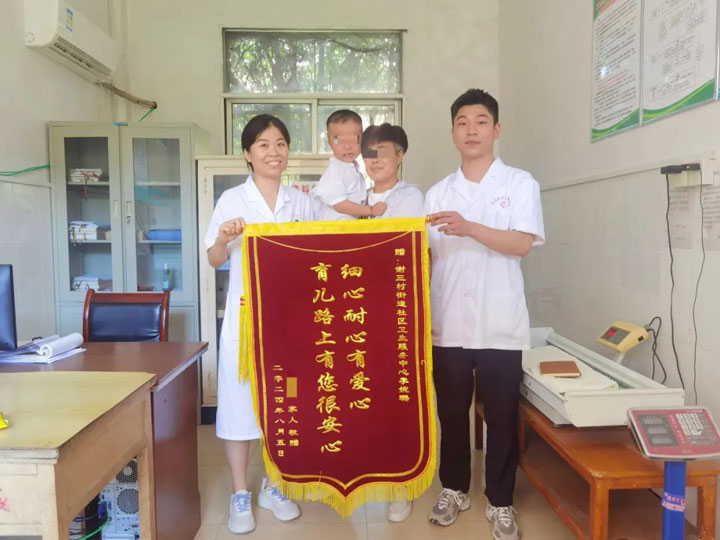 谢三村街道社区卫生服务中心内,儿保科墙上一面鲜艳的锦旗静静地挂着。“是前几天,孩子家长送给儿保科李婉璐老师的。孩子出生时各项评分都是正常的,体检时,李老师发现孩子有轻微的肢体乏力,家长带孩子及时就诊上级医院,后来诊断是产程过长导致大脑缺氧,好在治疗及时,现在宝宝各项指标都很好。”一旁的同事说。