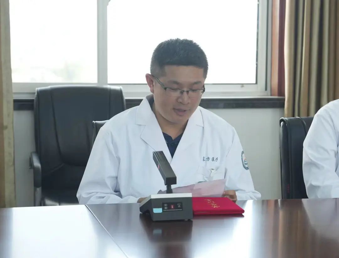随后,优秀医务工作者孙智勇作为医生代表发言。他表示很感谢医院为自己提供的援藏机会,在过去的一年的援藏医疗工作中,他始终将东方精神放在心中,一直秉持着“一切为了患者,为了患者一切”这一工作理念,通过临床查房、手术示范,疑难病例讨论等方式,将先进的医疗技术和经验传授给当地医护人员,全身心投入医疗援助工作。今后也将继续努力学习和实践,不断提升自己的综合素质和专业技术水平,积极投身医院各项工作中,为医院的发展贡献自己的力量,为患者提供最好的服务。