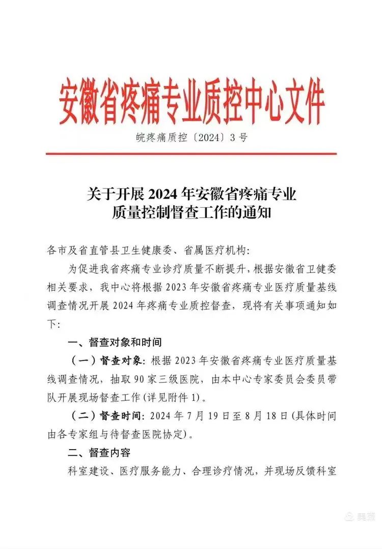 金风送爽,秋意渐浓,炎热的夏日随着秋风的吹拂而远去。在这个丰收的季节,为促进我省疼痛专业诊疗质量不断提升,帮助各级医院疼痛科加强质量控制体系建设,安徽省疼痛专业质量控制中心专家、合肥市第二人民医院介入血管疼痛科殷世武主任一行于2024年8月15日莅临淮南东方医院集团总院开展疼痛专业医疗质量督查工作。