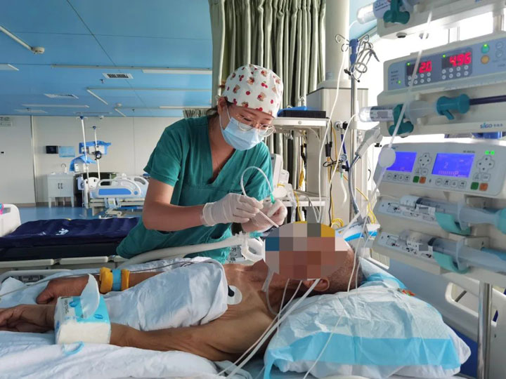 补液、降温,ICU主任辛静带领医护团队,立即为其行气管插管,经过抢救,老人的血氧饱和从70%升至正常,呼吸衰竭得到有效纠正。“第一关已经闯过来了,不要放松警惕”。辛静主任说。在ICU团队亚低温治疗等精心救治下,老人情况得到好转,逐渐稳定,顺利转入普通病房。“抢救及时,老人恢复很好,可以出院回家了。”神经内科刘卫淮主任告诉家人。