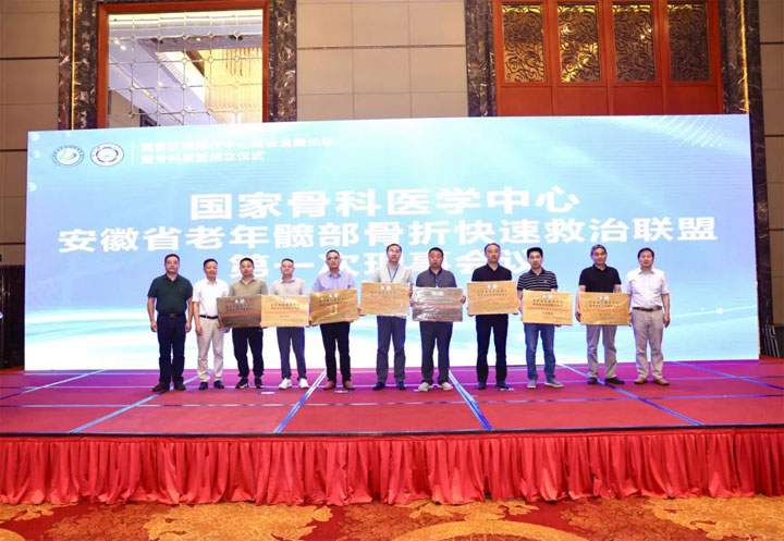 8月28日,国家区域医疗中心建设发展论坛暨专科联盟成立仪式暨授牌仪式在合肥举行,淮南东方医院集团骨科医疗中心受邀参加。在授牌仪式上,安徽省老年髋部骨折快速救治联盟正式成立,省内38家医疗单位受牌成为首批联盟单位,东方医院集团骨科医疗中心名列其中,东方总院骨科创伤专业学科带头人柏文昆主任受聘为理事。