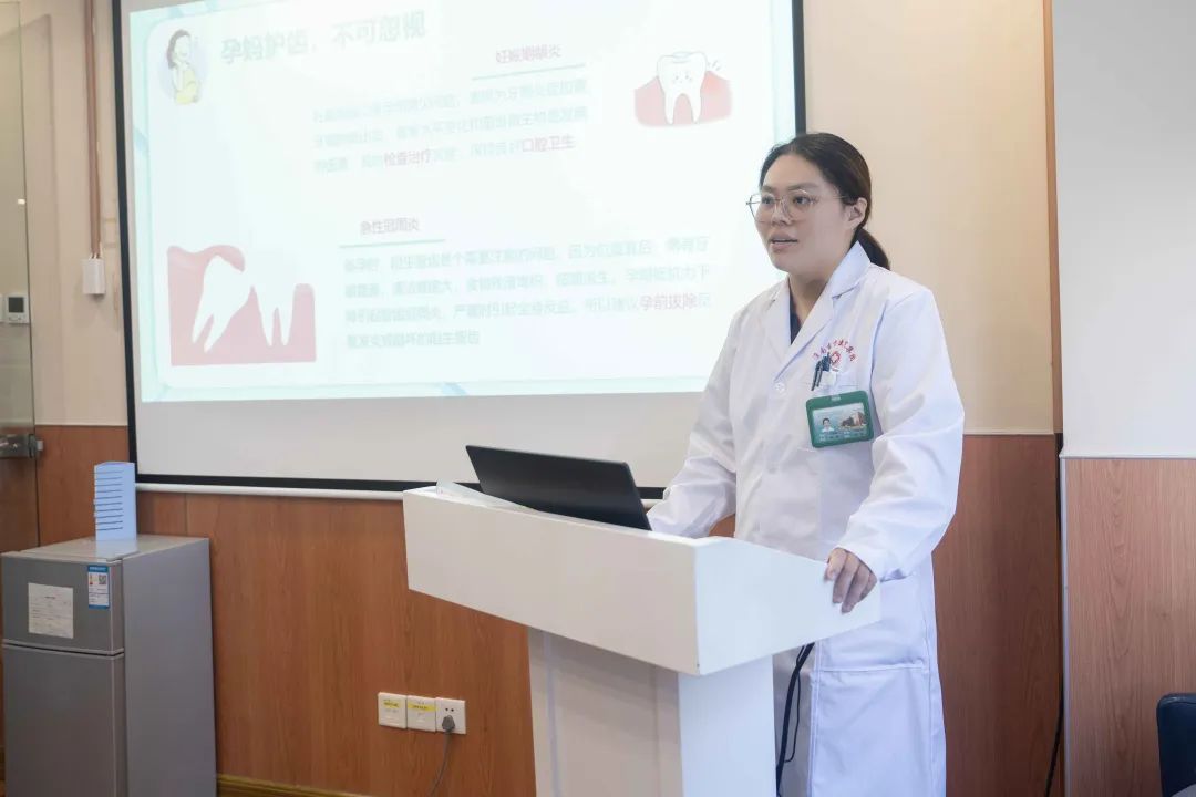妈妈是孩子健康的第一责任人,母亲的口腔健康状况影响孩子的口腔健康,只有妈妈拥有了维护婴幼儿口腔卫生的技能,才可以让孩子健康的牙齿相伴终生。9月19日下午,东方总院口腔科李丽主任与赵雪颖医师带着口腔健康知识走进东方旭日母子中心,为新晋爸爸妈妈与各位准妈妈们带来了孕产妇口腔健康专题讲座,对孕期口腔常见疾病及危害进行了讲解,对孕产期和婴幼儿期口腔保健的误区进行了解答,并现场为育龄女性和准妈妈们,进行了针对性的口腔检查及保健指导。