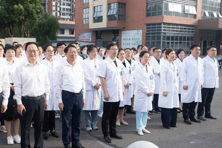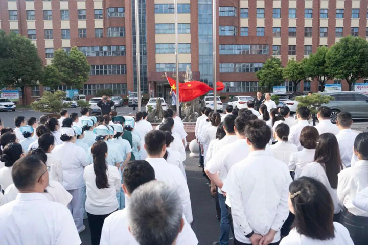 身在国旗下,医师代表共同念诵新时代医疗卫生职业精神,感慨颇多:“作为一名守护生命的医者,我们要怀着对未来的梦想,怀着对医疗工作这个职业的无限热爱,怀着在这里建功立业的追求,牢记前辈嘱托,要不惧艰险、不负所望,在为医院、为社会的服务中,展现青春风采,实现人生价值。”