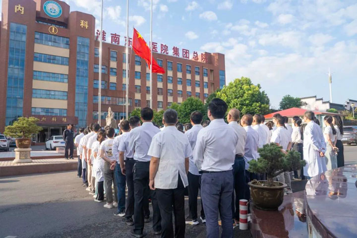 神州大地俱欢腾,举国同庆国庆日。为庆祝中华人民共和国成立75周年,弘扬爱国主义精神,进一步增强全院干部职工爱国、爱党的热情和民族自豪感,9月28日早上7点,淮南东方医院集团隆重举行升国旗仪式,全体院领导、中层干部、职工代表参加仪式。迎着晨曦,在淮南东方医院集团总医院广场上近200位医院干部职工重温红色梦想,共沐节日赞歌。
