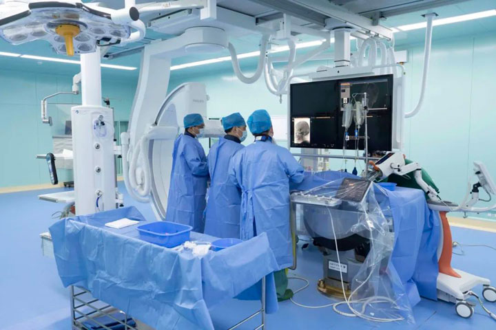 随后,东方医院神经外科手术团队凭借精湛的技术和丰富的经验,顺利完成了“保护伞保护下颈内动脉狭窄球囊扩张+支架植入术+经导管颅内动脉瘤支架辅助栓塞术颈内动脉狭窄球囊扩张支+架植入术+经导管颅内动脉瘤支架辅助栓塞术”这项复杂高难手术,为患者带来了生命康复的希望。术后顾先生复查头颅CT提示颅内未见出血、梗死,在经过多科室巩固治疗后,成功康复出院。