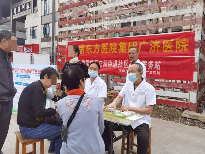 为进一步普及心理健康和精神卫生知识,10月10日,广济医院积极响应上级号召,组织蔡家岗、谢家集、谢三村街道社区卫生服务中心及立新街道社区卫生服务站携手李郢孜医院、望峰岗镇社区卫生服务中心等,来到谢家集区楚淮河集门前广场,开展“世界精神卫生日”健康科普宣教活动。