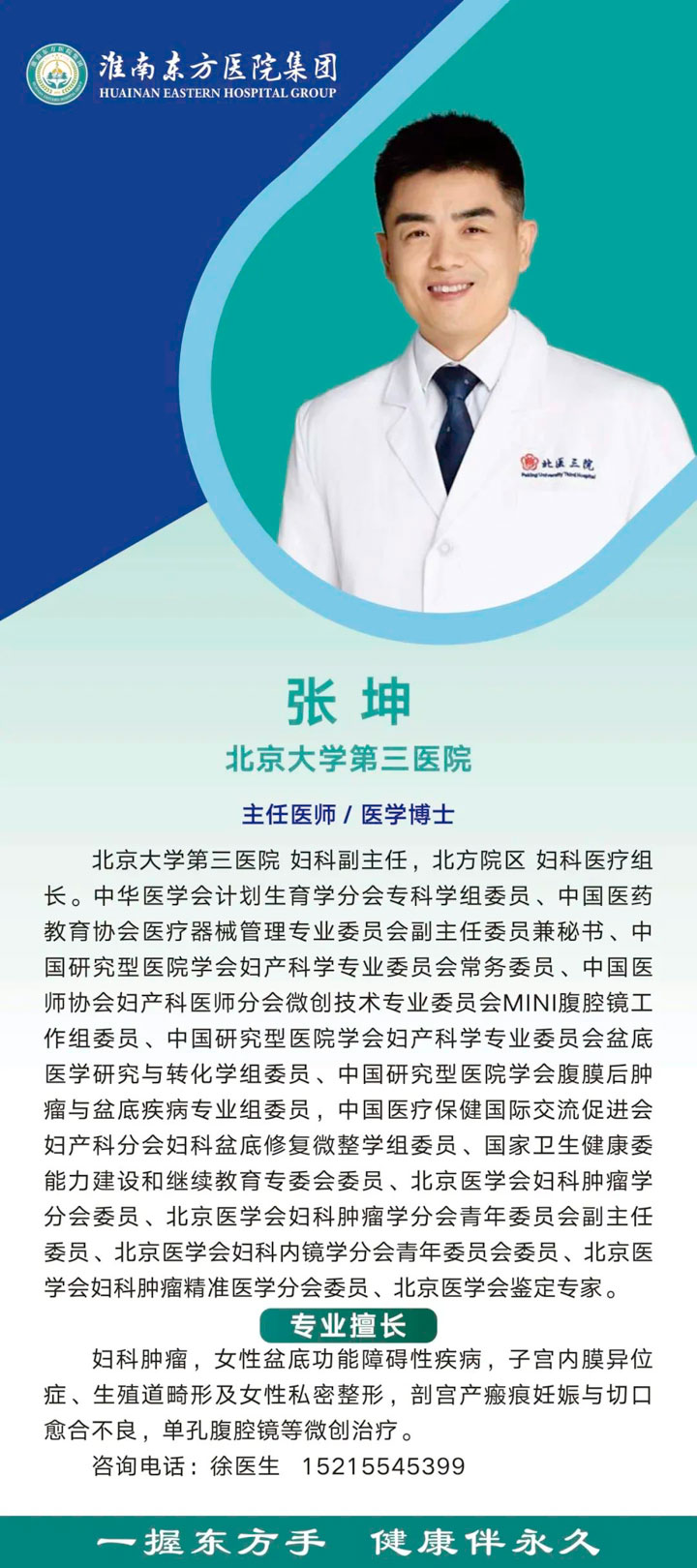 在疾病诊疗中,疑难疾病的诊治一直是临床工作的重点难点,也是困扰广大患者的难题。疑难疾病的诊治常需要高水平专家共同探讨及研究,患者求医过程中也常遇到多地多专科辗转奔波就诊、专家号源紧张挂号难等问题。东方医院集团特邀全国知名专家出诊,搭建会诊平台,提供高水平、便利、高效的诊疗服务。11月起,北京大学第三医院医学博士张坤将定期来院坐诊,为患者提供专业、科学的诊疗服务。