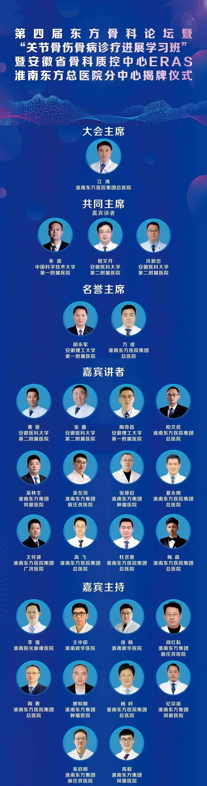 为促进各骨科同道之间的学术交流,共同探讨关节骨伤骨病诊疗关键领域的临床热点议题,2024年12月1日,由淮南东方医院集团主办的第四届东方骨科论坛暨“关节骨伤骨病诊疗进展学习班”暨安徽省骨科质控中心ERAS淮南东方总医院分中心揭牌仪式在东方总院多功能厅顺利召开,此次学习班大咖云集,吸引了众多骨科领域的专业人士参加,开展了一场精彩绝伦的学术盛宴。会议由淮南东方医院集团骨科医疗中心院长江涛担任大会主席并主持。